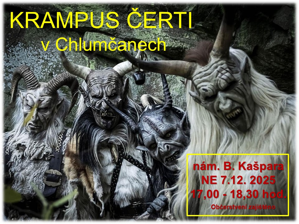 Krampus čerti v Chlumčanech 2025 - neděle 7.12.2025 od 17:00 do 18:30 hodin.