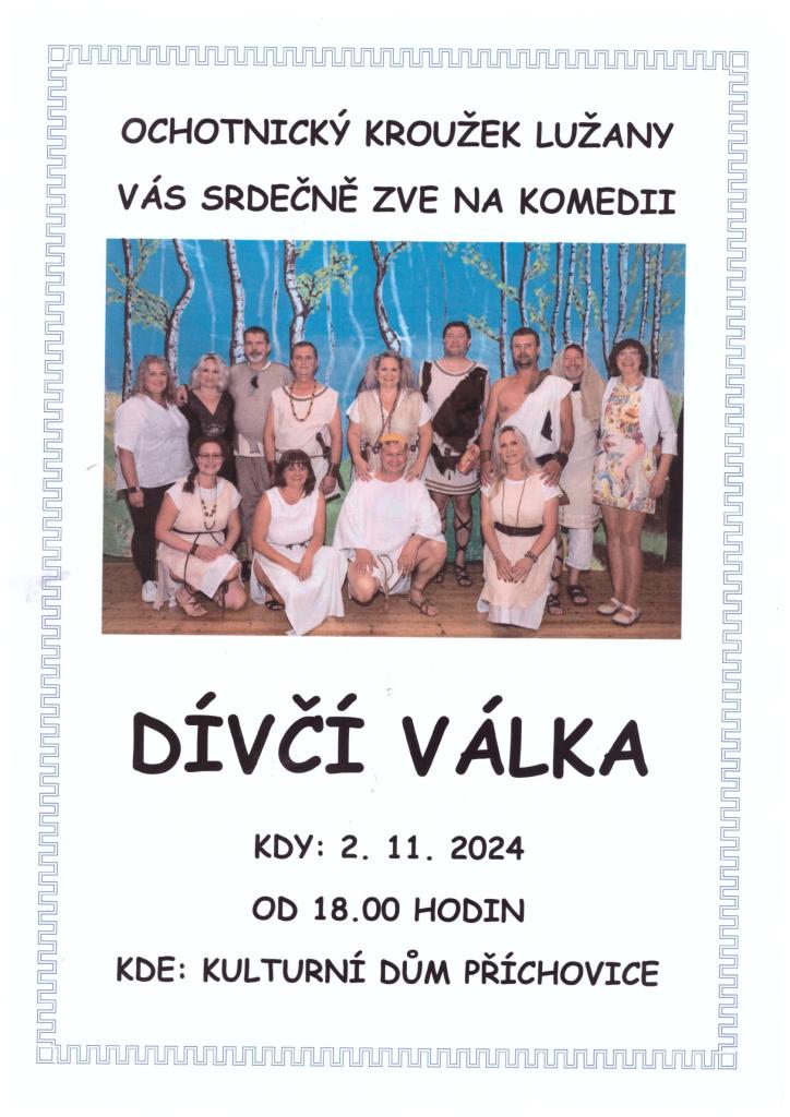 Ochotnický kroužek Lužany představí komedii DÍVČÍ VÁLKA