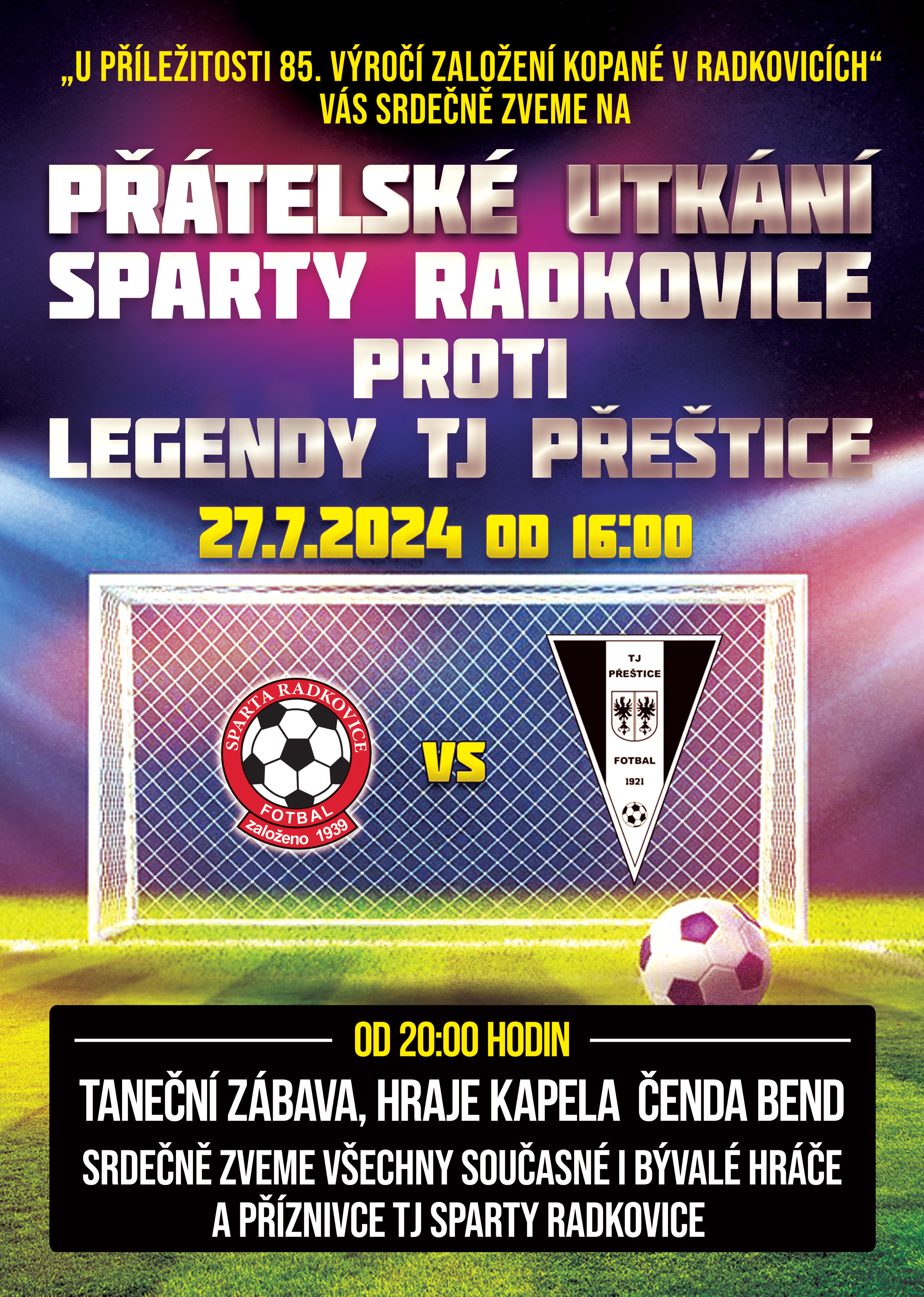Přátelské utkání Sparty Radkovice proti Legendy TJ Přeštice