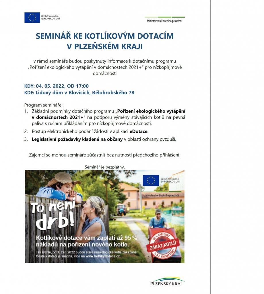 SEMINÁŘ KE KOTLÍKOVÝM DOTACÍM