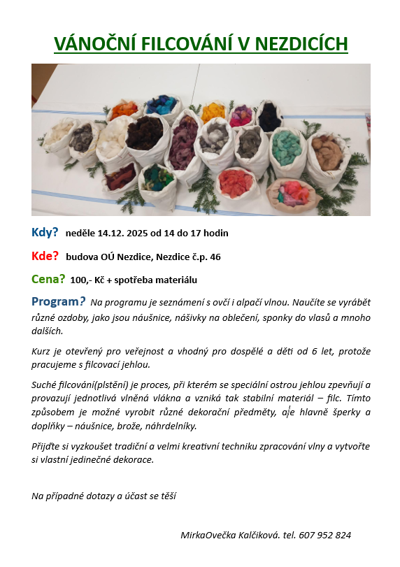 Vánoční filcování v Nezdicích - v neděli 14. prosince 2025