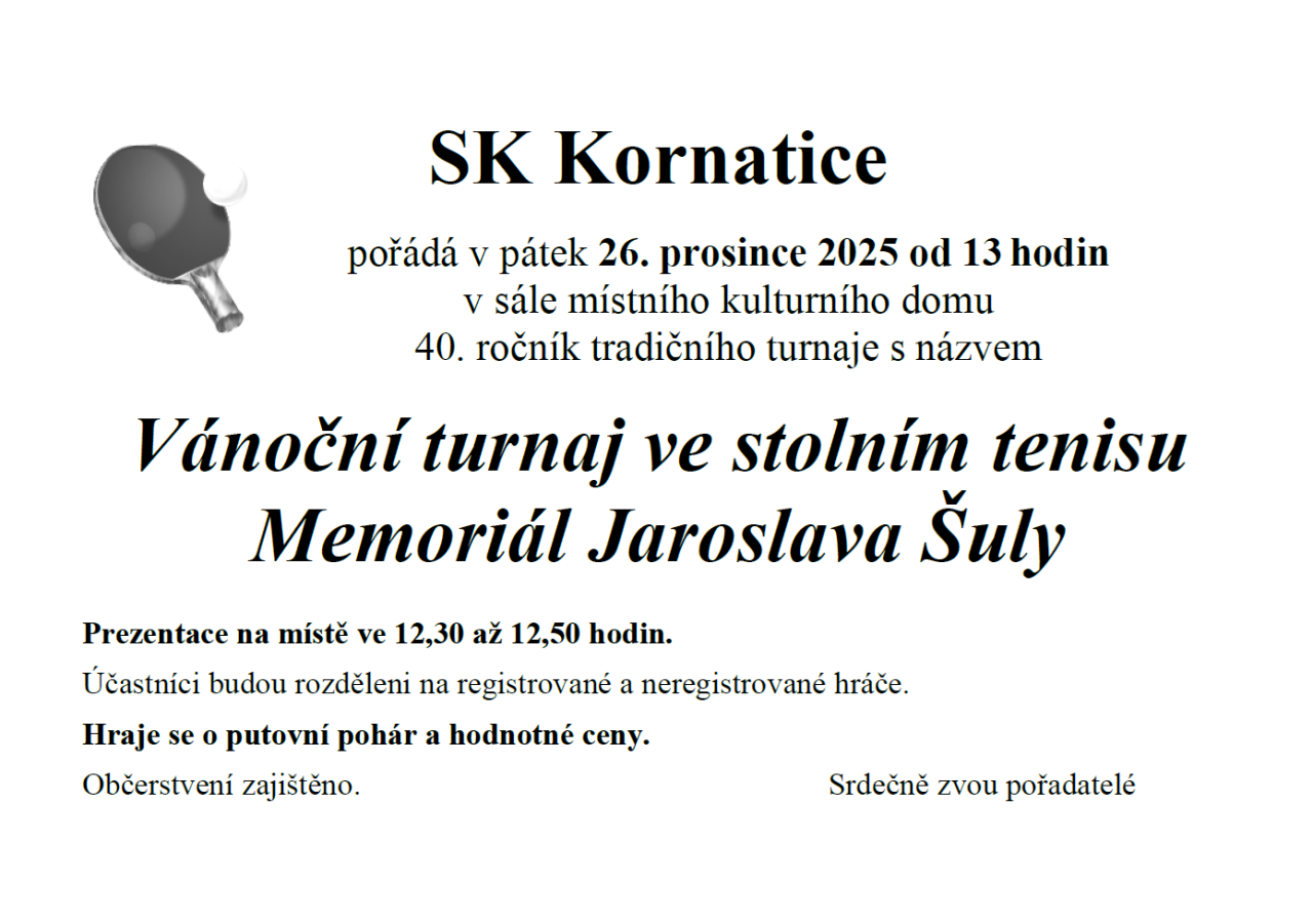 Vánoční turnaj ve stolním tenisu - Memoriál Jaroslava Šuly