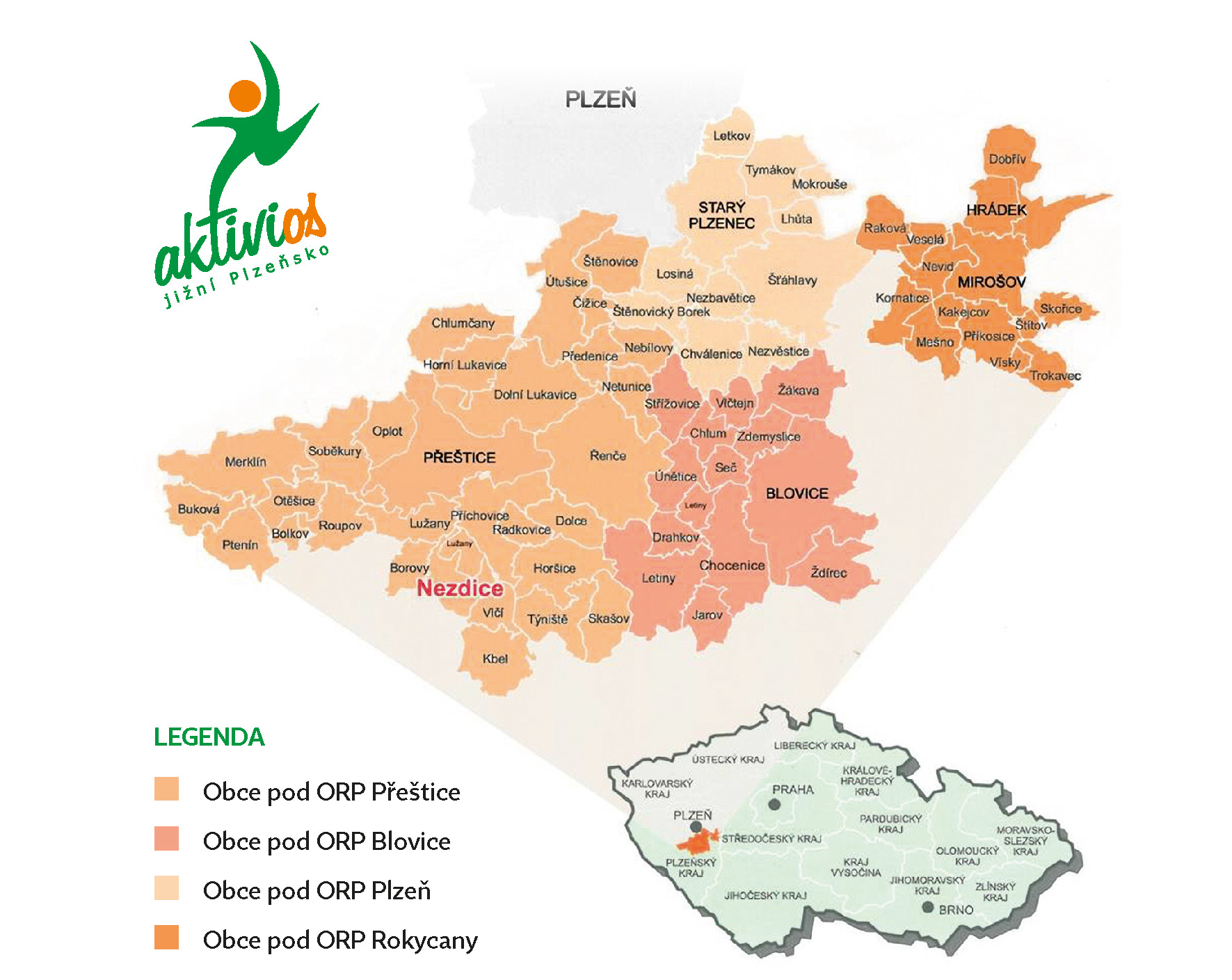 Tato organizace působí na území 68 převážně malých venkovských obcí Přešticka, Blovicka, Staroplzenecka a Mirošovska o rozloze téměř 600 km2, na kterém žije více než 54 tisíc obyvatel. Z celkových 68 obcí má 41 obcí méně než 500 obyvatel. Oblast má pouze pět nevelkých měst - Přeštice, Starý Plzenec, Blovice, Mirošov a Hrádek u Rokycan, z toho největší město Přeštice nemá ani 7 tisíc obyvatel. I tato čísla svědčí pro celkově venkovský ráz našeho zájmového území. Je to oblast s dosud téměř průmyslem nedotčenou přírodou a bohatou historií, která se odráží v podobě řady církevních i světských památek. Na celém území působí řada neziskových organizací, spolků a sdružení, která rozšiřují bohatou kulturní a sportovní nabídku akcí.